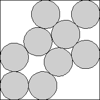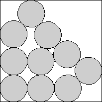 Aztec kings were very rich and they were proud of their wealth. Once an Aztec king ordered some decoration items to decorate the palace. The decoration items were big cirlces (actually spheres, but here we will consider them to be circles) of glasses. All the circles had the same radius. But it was risky to bring the fragile circles to the palace, because the circles could break easily. The minister of the king suggested that the circles should be packed in the smallest box possible so that they cannot move inside the box. But the king was too proud to do so. He orderd that the boxes should be as large as possible ensuring that the circles won't be able to move inside the boxes, and of course they must be of square-size. So the royal mathematician had a job in his hands, and he seeks your help. Each box can have 9 or 10 circles. See the pictures below.