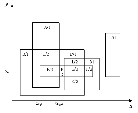 Consider a set of rectangles in 2D space as illustrated in the